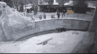 Bé gái 3 tuổi đang trên tay mẹ bất ngờ rơi vào chuồng gấu ở Tashkent, Uzbekistan, các nhân viên nhanh chóng dụ con gấu đi nơi khác và giải cứu bé gái.