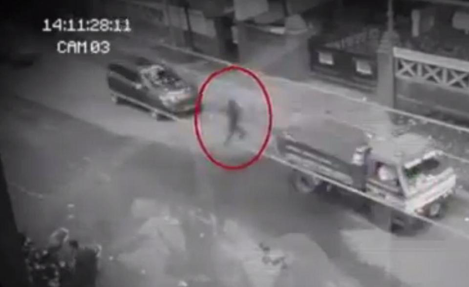 Trong đoạn video được cửa hàng đối diện con đường cung cấp, một bóng đen bất ngờ xuất hiện trên vỉa hè, lao xuống lòng đường. Nó thậm chí còn đi xuyên qua các phương tiện đang lưu thông trên đường phố trước khi biến mất.