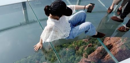 Video: Run rẩy đi trên cầu treo thủy tinh 5D ở Trung Quốc