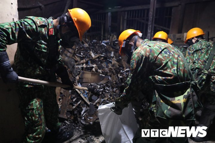 Nửa tháng sau vụ cháy, gần 200 người được huy động tham gia tẩy độc, dọn dẹp khu nhà xưởng 6.000 m2 của Công ty Rạng Đông.