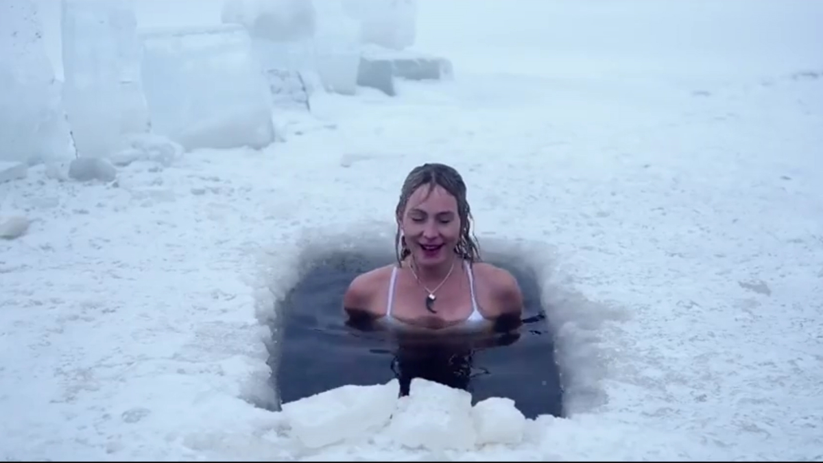Video: Rùng mình xem cô gái tắm trong hồ băng