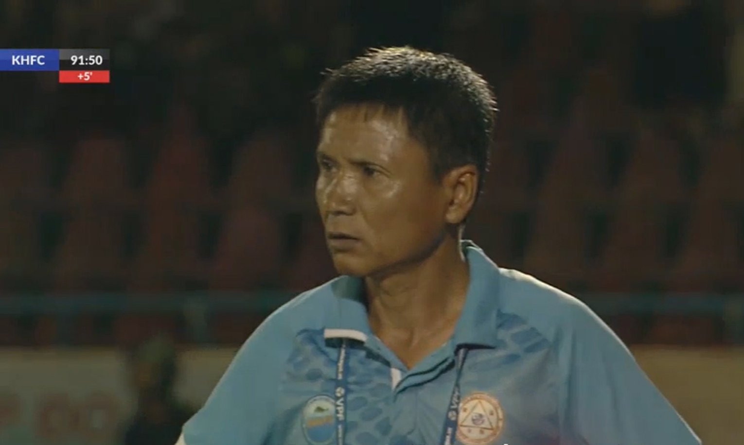 Tiền vệ sinh năm 1991 đã đổ gục xuống sân sau khi tự biến mình thành "tội đồ". HLV Võ Đình Tân ở bên ngoài sân cũng không giấu được sự bực tức khi chứng kiến học trò tự khiến đội nhà mất điểm.