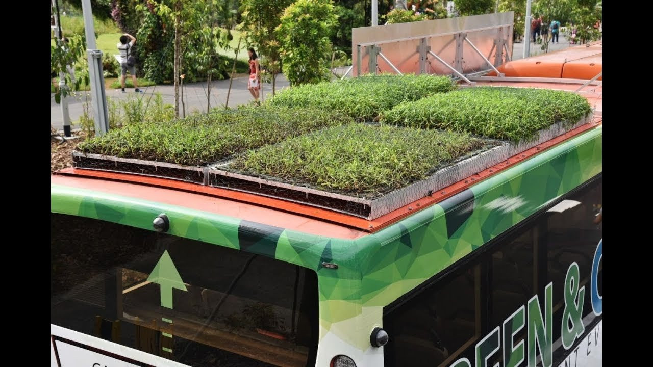 Singapore tiếp tục chứng minh lối sống xanh bằng việc vận hành xe buýt kết hợp vườn cây trên nóc nhằm tận dụng năng lượng mặt trời sẵn có.
