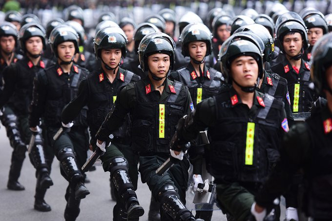 Sinh viên khoa Vũ trang, Học viện Cảnh sát nhân dân đã có buổi tập luyện những động tác võ thuật đẹp mắt, yêu cầu tính tập thể đồng đều và thuần thục.