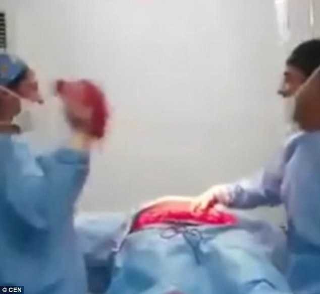 Nữ y tá thậm chí còn cầm cả phần da bụng của bệnh nhân khi nhảy múa.