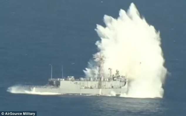 USS Thach trở thành bia đỡ đạn trong cuộc tập trận lần này. Dù nghỉ hưu cách đây 3 năm, chiến hạm Mỹ vẫn chứng tỏ sức chịu đựng đáng nể của mình sau khi trụ vững trong nửa ngày dù phải hứng tới hơn 2 tấn chất nổ.