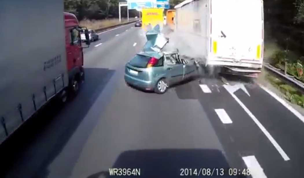 (VTC News) - Trên cao tốc có nhiều xe tải lớn chạy với tốc độ cao, tài xế chiếc sedan phán đoán sai lầm khi lách vào làn trong nhưng bất ngờ gặp phải tai họa.