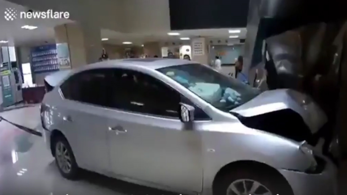 Khi đang lùi xe, tài xế đạp nhầm chân ga khiến ô tô lao thẳng vào sảnh một bệnh viện tại tỉnh Hồ Nam, Trung Quốc, vụ việc làm một phụ nữ bị thương nhẹ.