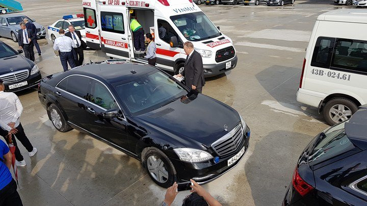 Đoàn xe Nga sẵn sàng phục vụ Tổng thống Putin. (Ảnh: Tùng Đinh)