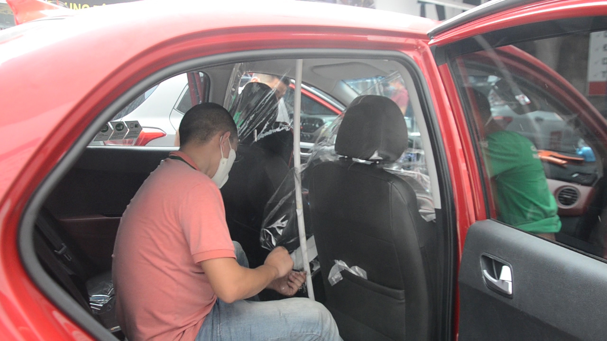 Một hãng xe công nghệ thực hiện lắp màng ngăn chống dịch Covid-19 cho các tài xế.