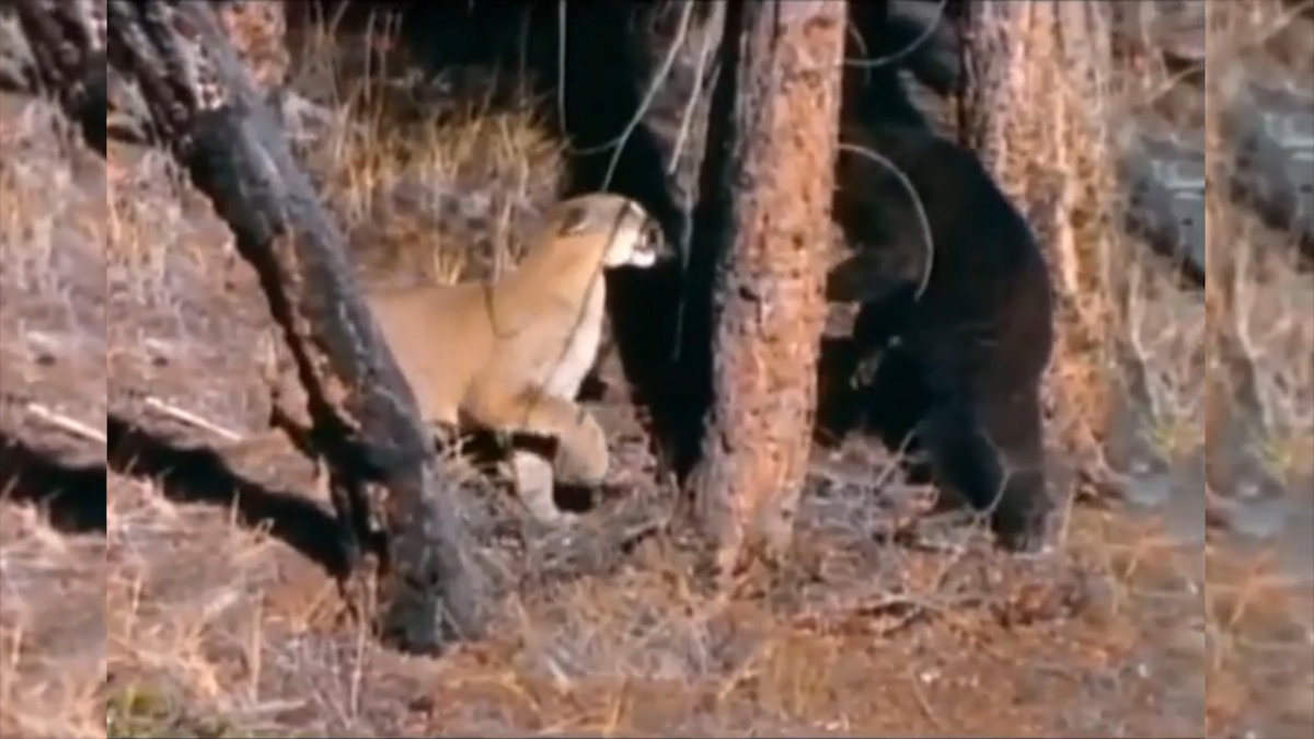 Báo mẹ lao đến dạy cho gấu đen một bài học khi phát hiện nó vả con báo non, gấu đen sau đó phải trèo lên tận ngọn cây để trốn chạy.