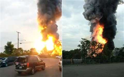 (VTC News)- Sau cú va chạm giữa tàu chở hàng và một chiếc xe tải, đoàn tàu lật bánh, bốc khói nghi ngút rồi nổ tung.