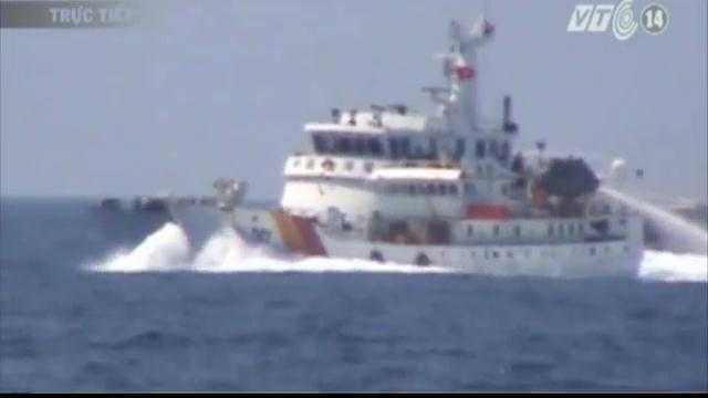 (VTC News) - Khoảng 8h10 ngày 13/5, khi tàu 8003 cách khu vực giàn khoan khoảng 8 hải lý, phía Trung Quốc điều từ 3 đến 4 tàu áp sát tàu Việt Nam khoảng 200 m. Tàu Việt Nam phát loa yêu cầu phía Trung Quốc chấm dứt hoạt động phi pháp tại vùng biển Việt Nam. Nhưng tàu 3401 của Trung Quốc đi vòng bao vây và hăm dọa, theo sau tàu này là nhiều tàu khác dùng vòi rồng tấn công vào tàu Việt Nam.