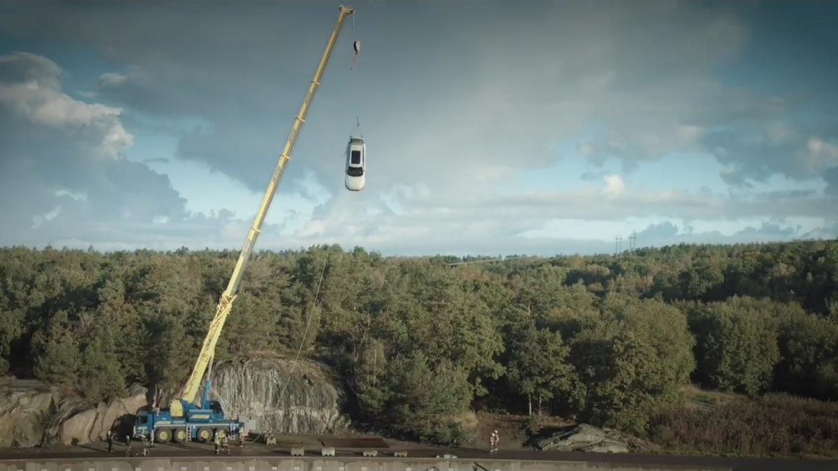 Mười xe Volvo thuộc các dòng khác nhau được thả theo phương thẳng đứng từ độ cao 30m để mô phỏng chân thực nhất các tình huống va chạm khắc nhiệt nhất.