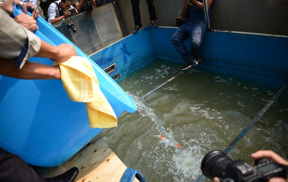 Video: Thả cá Koi xuống sông Tô Lịch đoạn lọc công nghệ Nhật Bản
