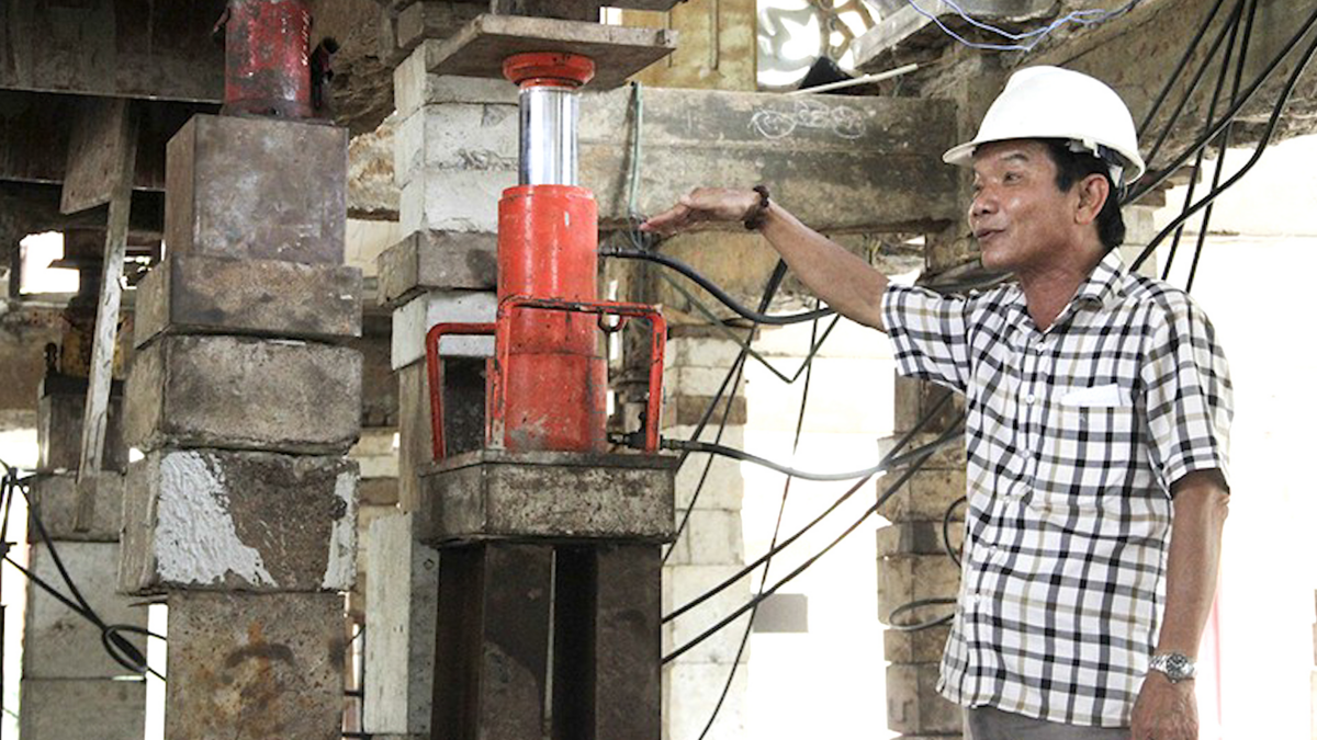 “Thần đèn” Nguyễn Văn Cư (TP.HCM) sử dụng cùng lúc 2 trạm kích và 22 ben thủy lực nâng biệt thự nặng 1.500 tấn lên cao 2 mét để chống ngập.