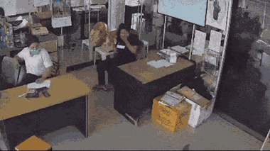 Một con thằn lằn hoang dã chạy vào một công ty trên đảo Koh Samui, Thái Lan, các nhân viên nữ sợ hãi, la hét và gọi điện thoại cầu cứu.