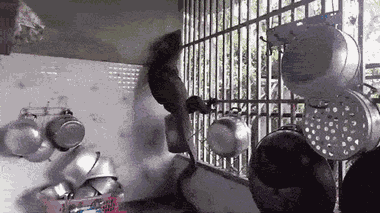 Một con thằn lằn hoang dã khổng lồ "đột nhập" nhà dân tại tỉnh Saraburi (Thái Lan) hất tung xoong nồi rồi trèo lên hàng rào tìm lối thoát.
