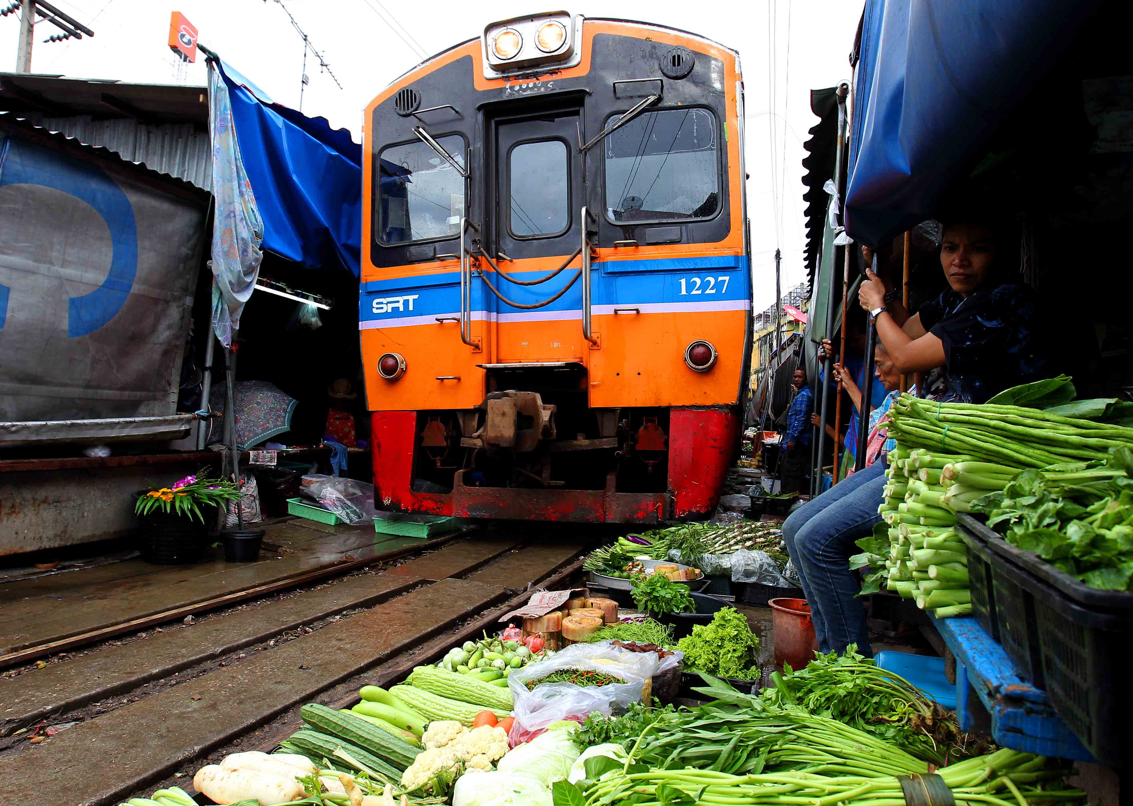 Điểm biến nó trở nên khác biệt và hấp dẫn khách du lịch là bởi quãng đường vỏn vẹn 500m gần cuối chặng đường sắt ở quận Maeklong. Hàng ngày có 4 lượt tàu đi và đến qua khu chợ được mệnh danh nguy hiểm nhất hành tinh.