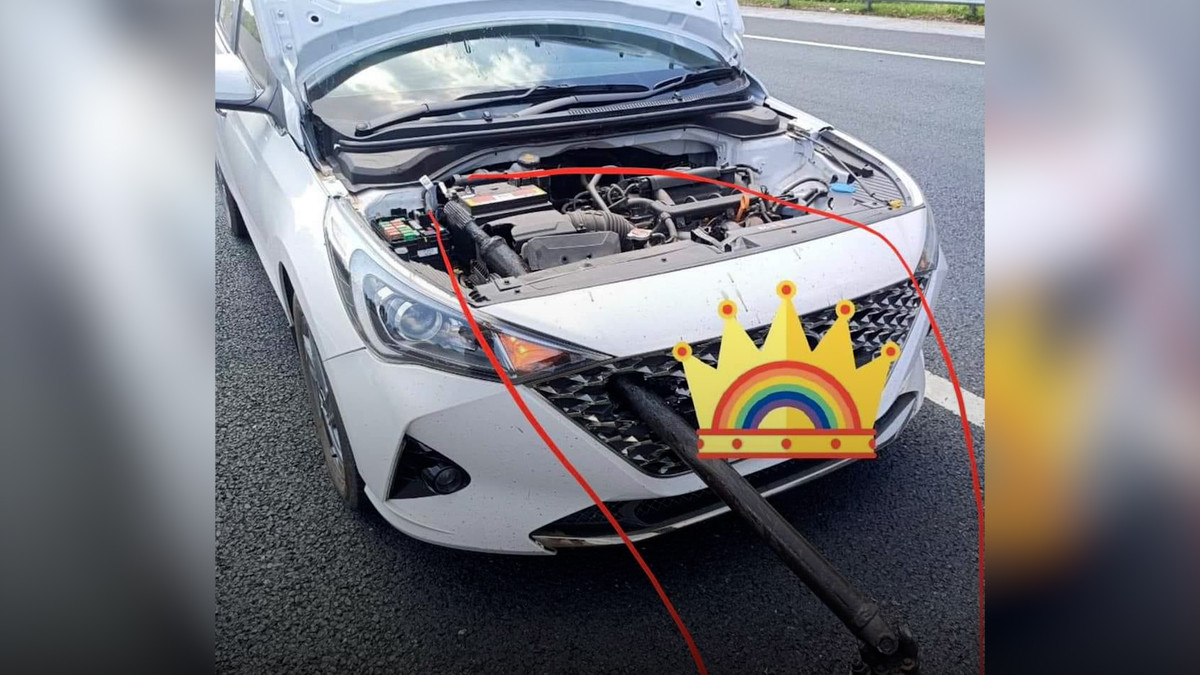 Chiếc ô tô đang đi trên cao tốc Hà Nội - Hải Phỏng bất ngờ bị một thanh kim loại dài khoảng 2 m từ xe bồn rơi trúng xuyên thủng phía trước xe.
