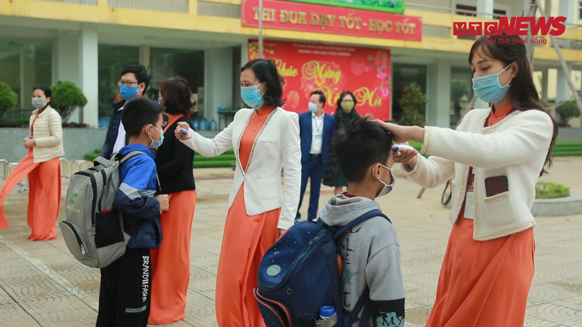 Sáng nay, trường tiểu học Xuân Phương (Hà Nội) hân hoan đón học sinh trở lại ngày đầu tiên, sau kì nghỉ Tết và nghỉ phòng dịch COVID-19.