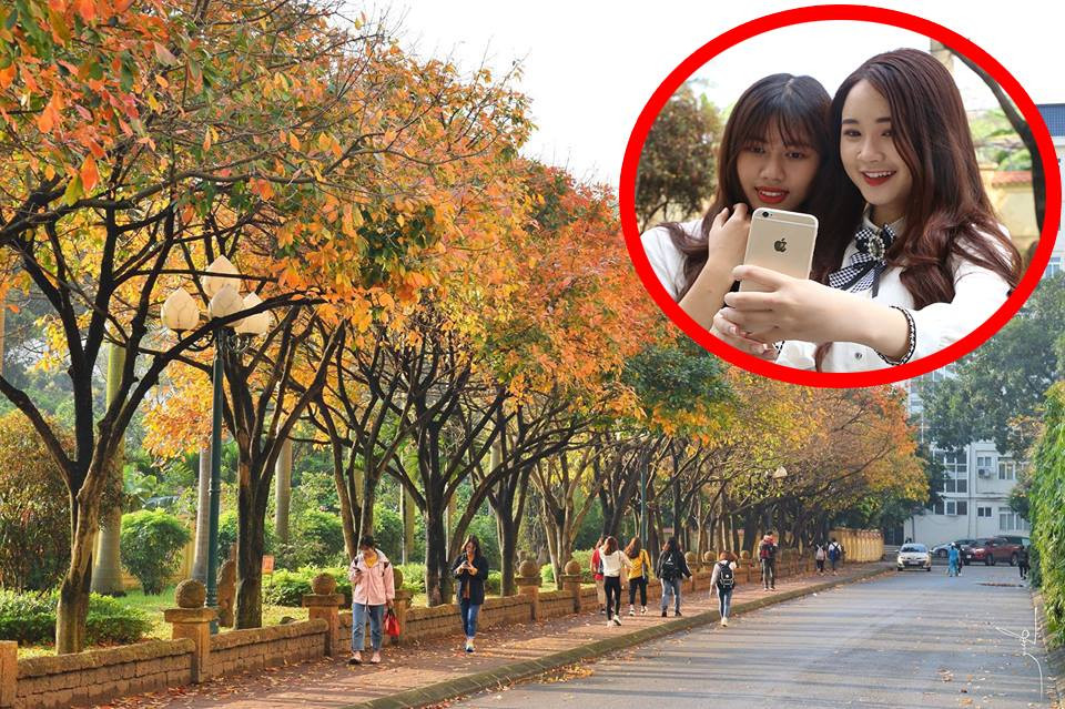 Video: Thiếu nữ đổ xô đi 'check in' con đường lá vàng đẹp như Hàn Quốc ở Hà Nội