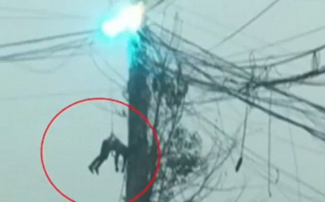 Đoạn video được người dân địa phương đăng tải ghi lại hình người thợ điện Trung Quốc treo mình trên đường dây diện cao thế trong khi ngọn lửa đang bùng cháy dữ dội ngay trên đầu anh.