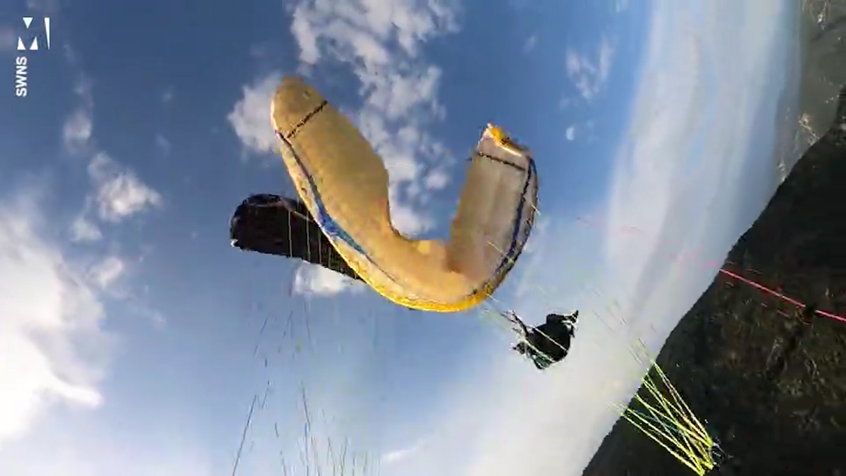 Video clip sau ghi lại cảnh thót tim khi 2 chiếc dù lượn bị xoắn vào nhau ở trên không khiến 2 người lượn dù đó bị rơi tự do một lúc.