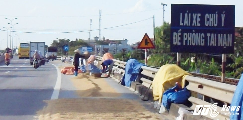 "Chúng tôi phơi tranh thủ thôi, cũng chỉ 2-3 ngày là xong. Mùa gặt mà, không sao đâu. Xong thì lại đường thông thoáng thôi mà", người dân này nói.