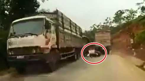 Dù chiếc xe tải phía trước khiến tầm nhìn của người đi xe máy bị hạn chế nhưng người đàn ông vẫn cố gắng vượt lên, không quan sát chiều ngược lại đang có chiếc xe tải đi tới nên đã va chạm, ngã lăn ra đường, thoát chết trong gang tấc.Video: Xe máy vượt ẩu thoát chết trong gang tấc