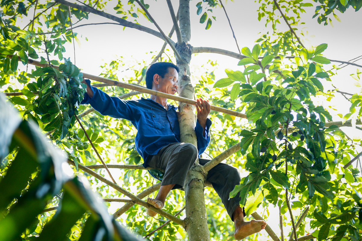 Vào vụ thu hoạch, những người theo nghề hái trám đen tại Hương Sơn (Hà Tĩnh) liên tục làm việc trên những ngọn cây, mỗi ngày thu nhập từ 500 đến 800 nghìn đồng.