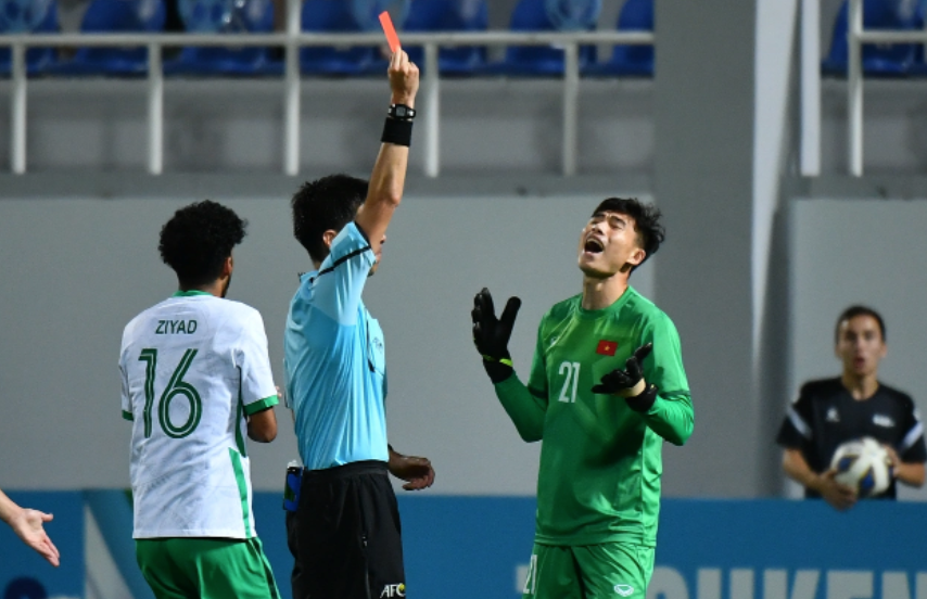 Ở tình huống này, trọng tài Yusuka Akari rất quyết đoán khi truất quyền thi đấu của Quan Văn Chuẩn. Thủ môn U23 Việt Nam phạm lỗi ngoài vòng cấm, ngăn cản cơ hội ghi bàn rõ rệt của cầu thủ đối phương. Quan Văn Chuẩn là cầu thủ U23 Việt Nam duy nhất phải nhận thẻ đỏ ở VCK U23 châu Á.