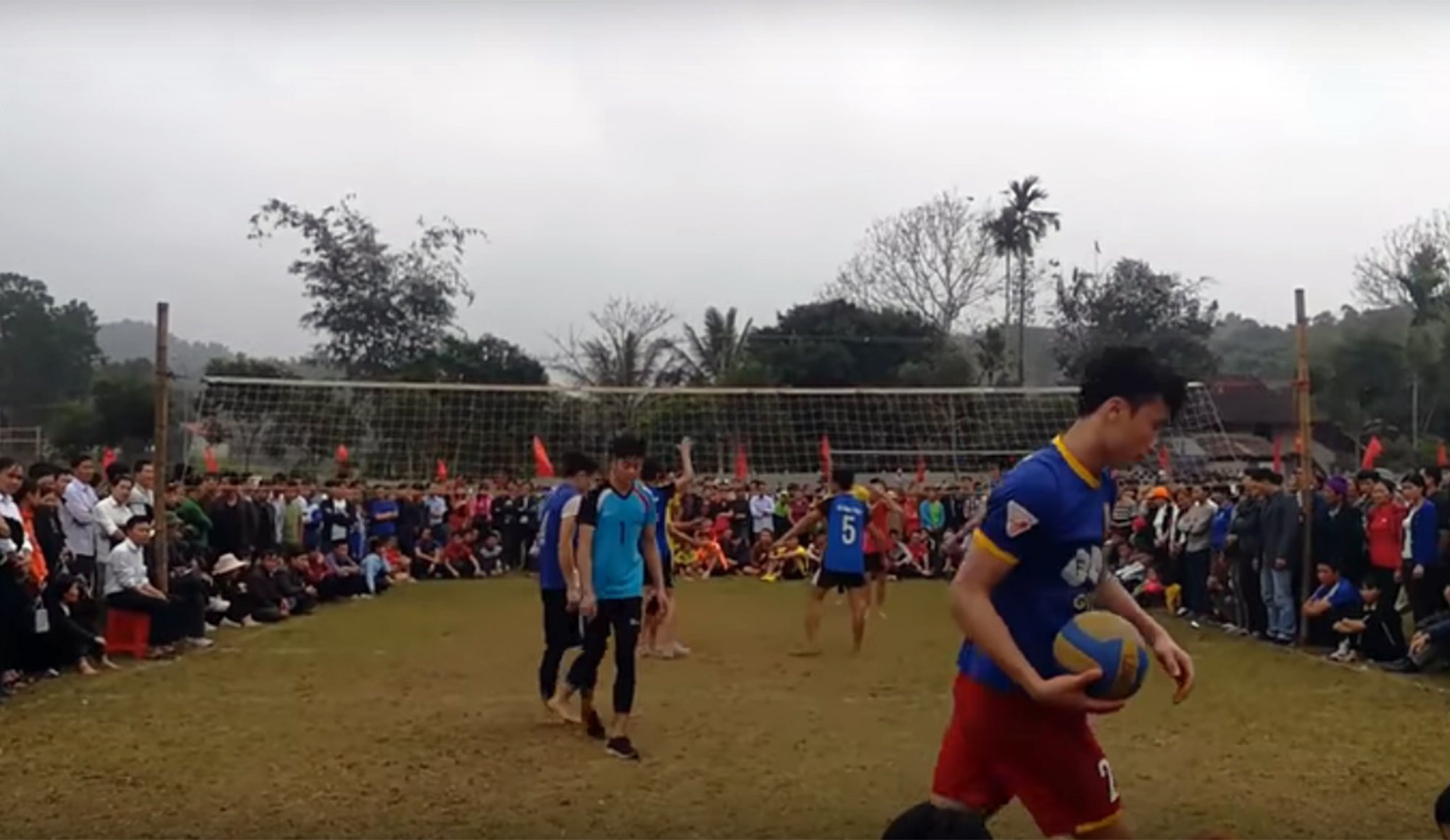 Cuộc so tài thu hút hàng ngàn người dân địa phương tới theo dõi, cổ vũ. Với chiều cao chỉ nhỉnh hơn 1,8 m, thủ môn Bùi Tiến Dũng "lép vế" trước VĐV điền kinh Quách Công Lịch (1,92 m). Tuy nhiên, thủ thành của U23 Việt Nam cũng cho thấy một khả năng chơi bóng chuyền đáng nể.
