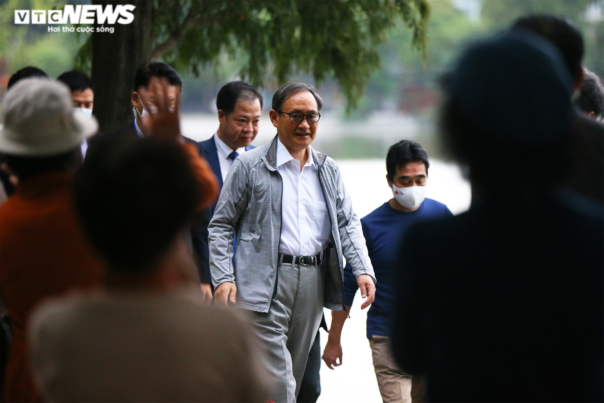 Thủ tướng Nhật Bản Yoshihide Suga được đông đảo người dân Hà Nội chào đón khi đi dạo quanh bờ Hồ vào sáng sớm 20/10.
