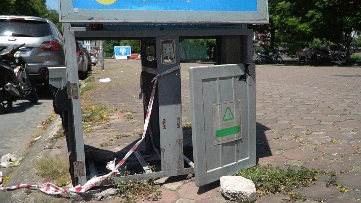 Hệ thống thùng rác công nghệ trị giá 200 tỷ đồng được lắp đặt tại 25 quận huyện của Hà Nội, sau một năm hoạt động bị hư hỏng rất nhiều.