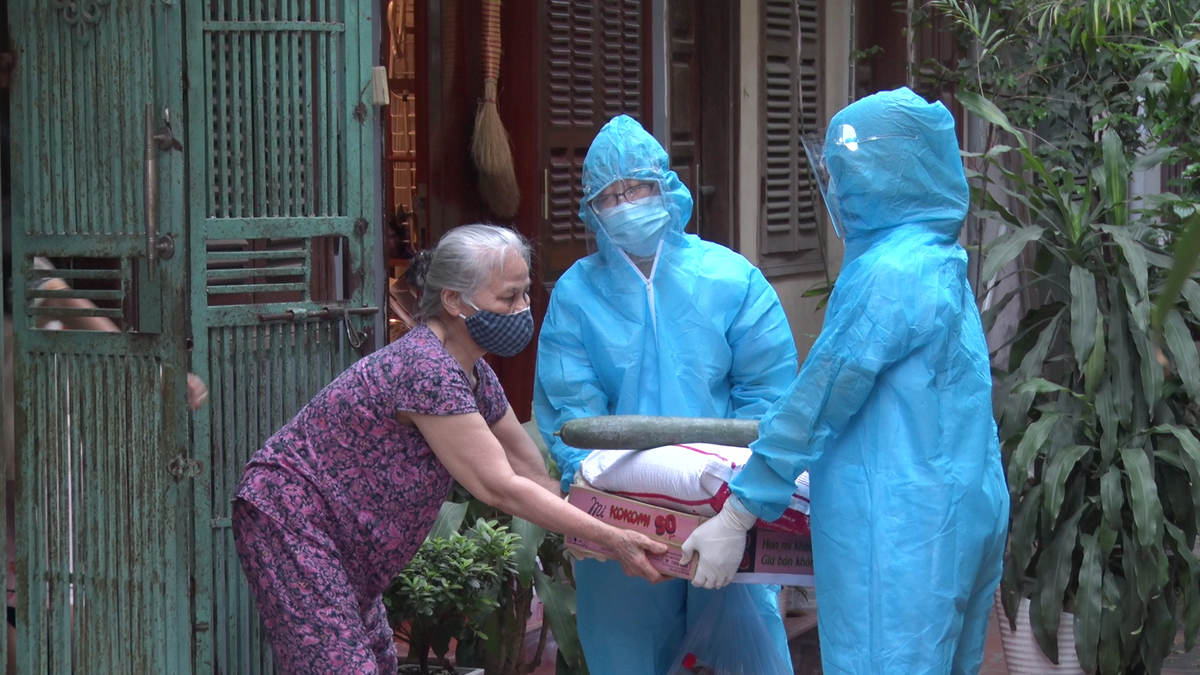 Video: Tiếp tế nhu yếu phẩm cho hơn 100 nhân khẩu trong vùng cách ly ở Hà Nội