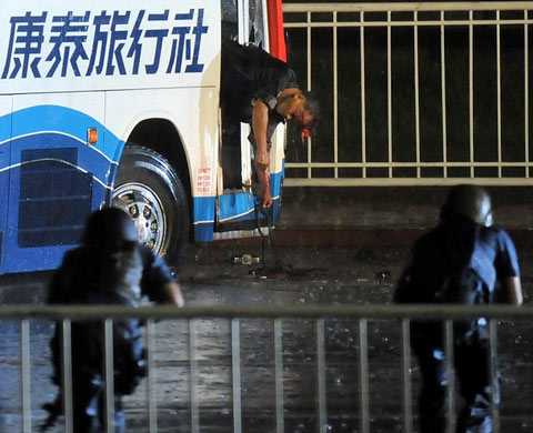 | Tài xế của chiếc xe bus chạy thoát ngay trước khi đội đặc nhiệm tiếp cận chiếc xe |