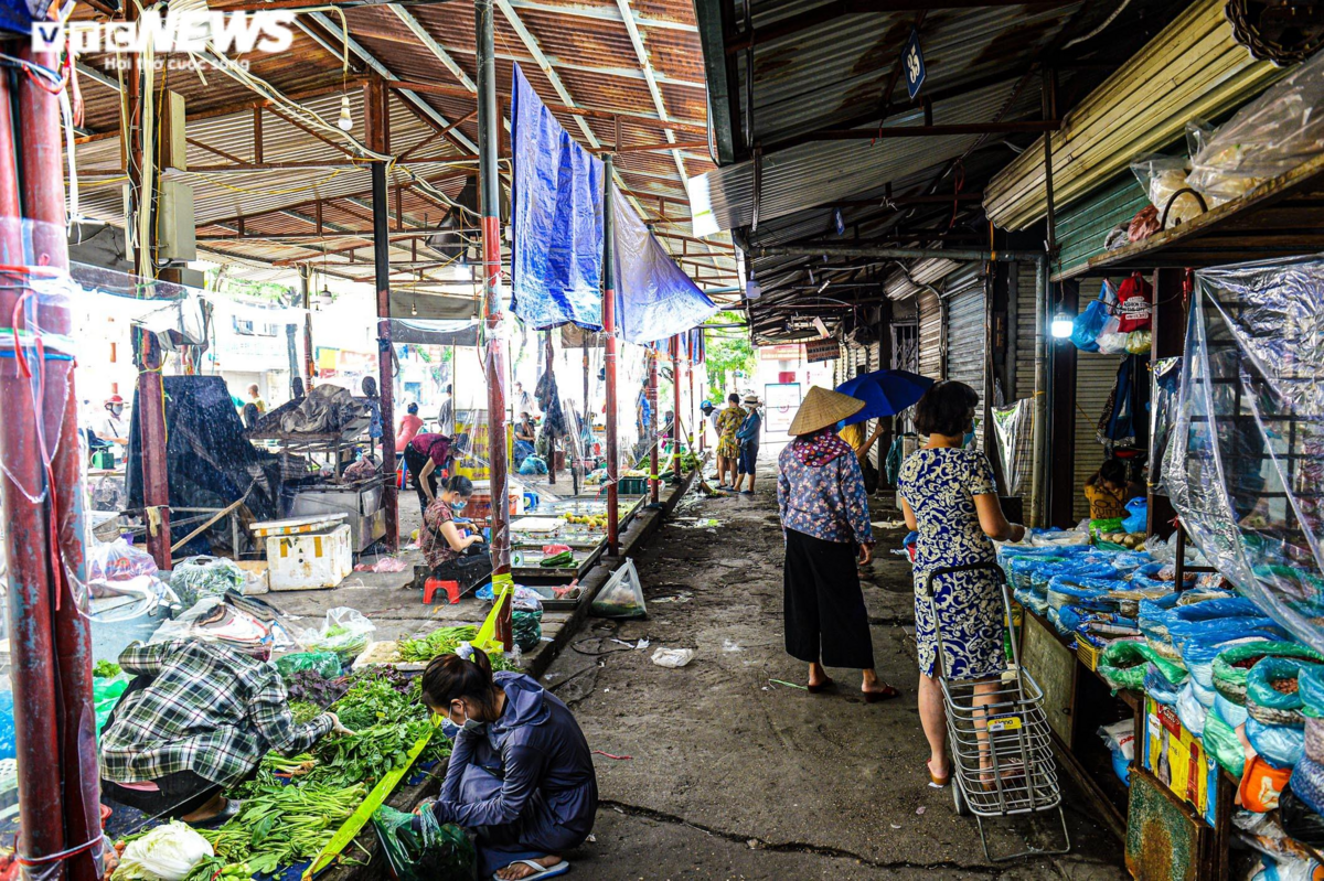 Tiểu thương chợ Bách Khoa, quận Hai Bà Trưng, Hà Nội lắp tấm chắn nilon bao quanh quầy hàng ngăn giọt bắn, đảm bảo giãn cách để phòng dịch COVID-19.