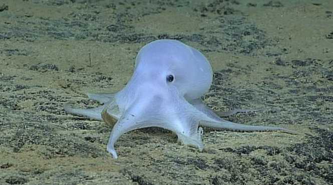 Loài bạch tuộc này có màu trắng sáng, được phát hiện ở độ sâu 4km dưới biển gần Hawaii, các nhà khoa học nói nó gần như chắc chắn là một loài mới.