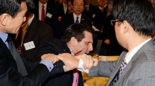(VTC News) - Đại sứ Mỹ tại Hàn Quốc Mark Lippert bị tấn công bằng dao lam ngày 5/3 khiến ông bị thương ở mặt và tay, mất khá nhiều máu.