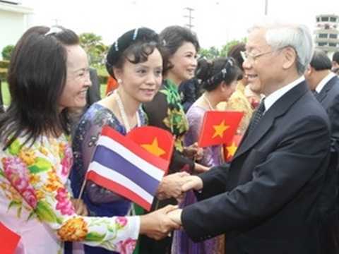 Tổng Bí thư nêu rõ hiện nay mối quan hệ hữu nghị và hợp tác nhiều mặt giữa Việt Nam và Thái Lan đang phát triển tốt đẹp. Chuyến thăm của đoàn nhằm trao đổi biện pháp tiếp tục phát triển hơn nữa quan hệ hữu nghị, hợp tác nhiều mặt giữa Việt Nam và Thái Lan.