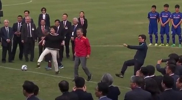 Video: Tổng thống Hàn Quốc, Phó Thủ tướng Vũ Đức Đam đá bóng cùng U23 VN