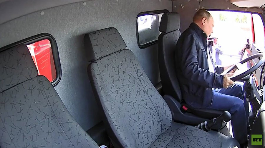 Sau khi nói lời cảm ơn tới những người đứng đầu dự án thi công này, ông Putin bước lên buồng lái một chiếc xe tải và điều khiển nó di chuyển qua cây cầu.