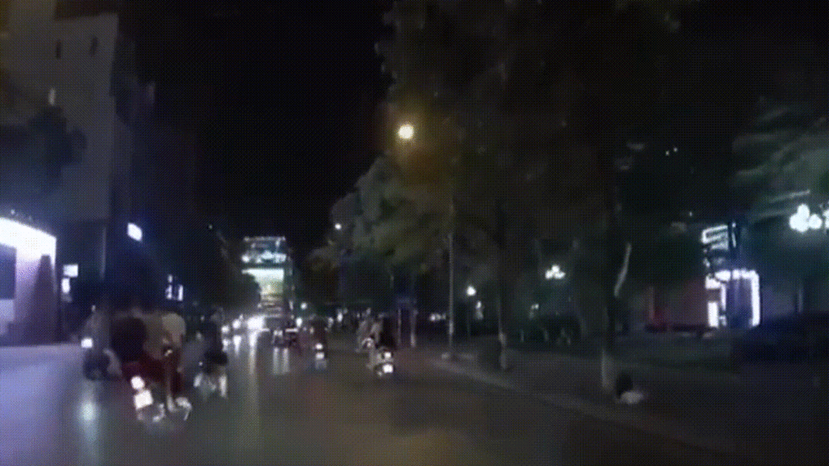 Người phụ nữ đi xe đạp điện trước Bệnh viện Thanh Nhàn, Hà Nội bị hai thanh niên chạy xe máy tông từ phía sau, vụ tai nạn được camera hành trình ghi lại vào tối 4/7.