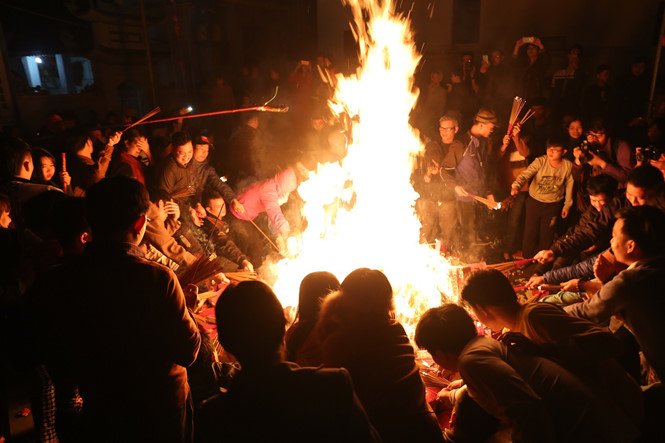 Chỉ đợi các nghi thức lễ kết thúc, người lớn, trẻ con, thanh niên, người già lao vào đống lửa. Ai cũng muốn lấy được nhiều nhất sự may mắn về cho gia đình bằng cách châm lửa lộc của đình làng.