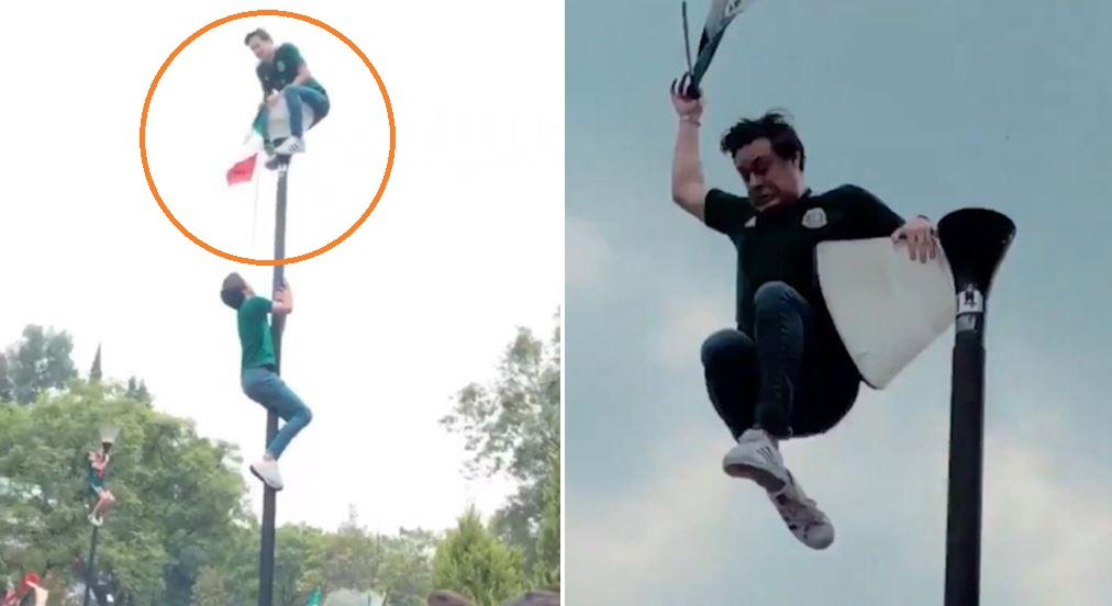 Video: CĐV Mexico trèo cột đèn ăn mừng và rơi xuống từ độ cao 6 mét