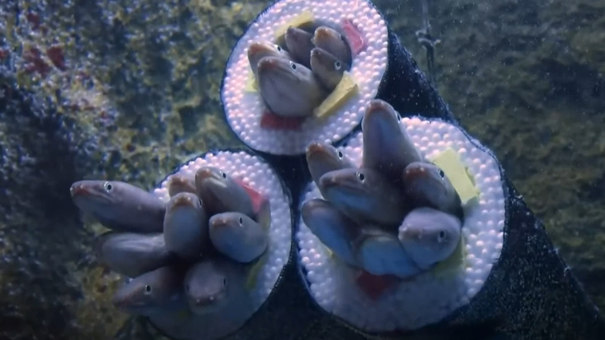 Để kỷ niệm Setsubun, ngày lễ đánh dấu sự xuất hiện mùa xuân của Nhật Bản, thủy cung ở Sendai đã biến lươn thành những miếng sushi truyền thống trong bể chứa.