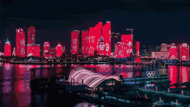 TP Thanh Đảo (Trung Quốc) đón Tết Nguyên đán bằng màn trình diễn ánh sáng ngoạn mục trên bề mặt các tòa nhà chọc trời.