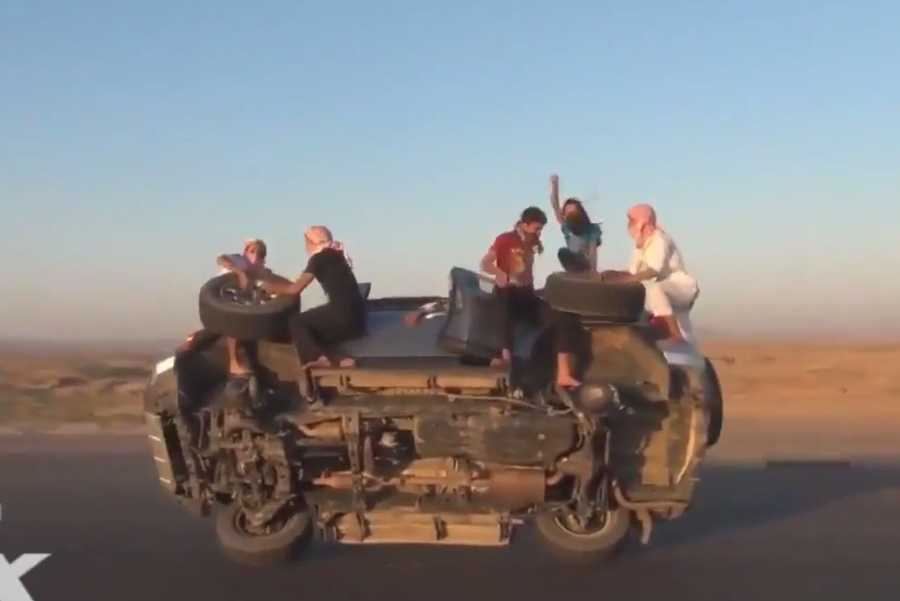 (VTC News) - Trong vòng ba phút rưỡi, 5 thanh niên Ả-rập thay xong 2 quả lốp của chiếc Toyota FJ Cruiser đang chạy, trong trò tiêu khiển bị lên án ở khắp Trung Đông.