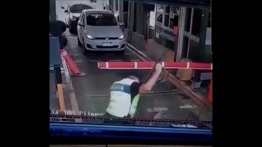 Định đi qua barie đang mở, người đàn ông đi xe máy bị cảnh sát túm lại đánh túi bụi ở Buenos Aires, Argentina.